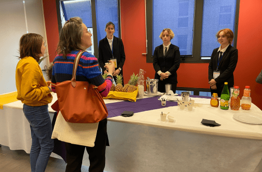 L’après-midi, les apprenties en CAP Service en restaurant du campus de Montpellier ont brillamment assuré des démonstrations de découpes de fruits et proposé un cocktail sans alcool très apprécié des visiteurs. Une manière concrète de mettre en valeur les compétences acquises en formation et de montrer, en situation réelle, ce que permet l’alternance.