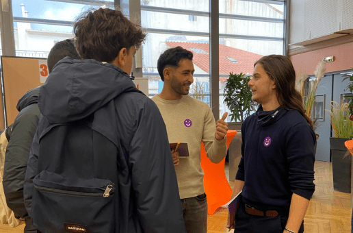 Aux côtés de nos conseillers formation, Ziar et Alexandre, apprentis en BTS Management Commercial Opérationnel (MCO 1ère année), ont partagé leur expérience de l’alternance. Leur présence a apporté un regard concret et authentique sur le quotidien d’un apprenti à Purple Campus Béziers.