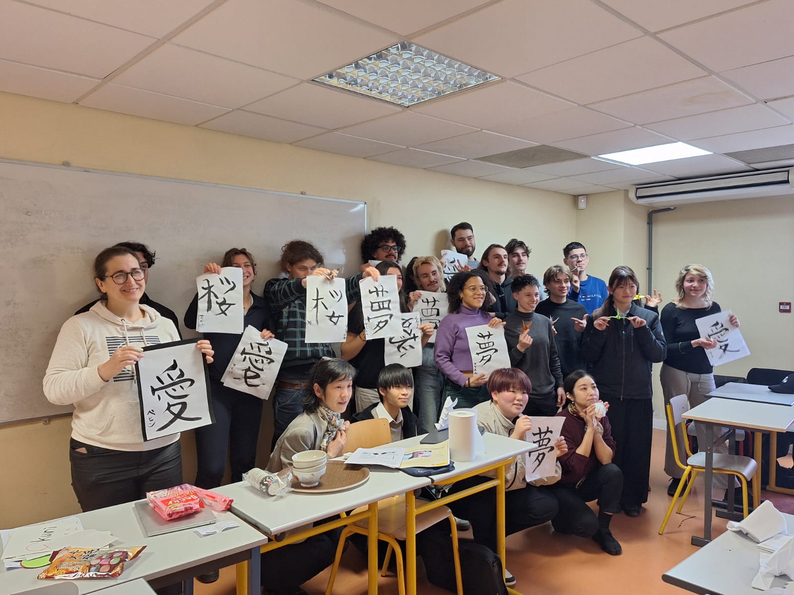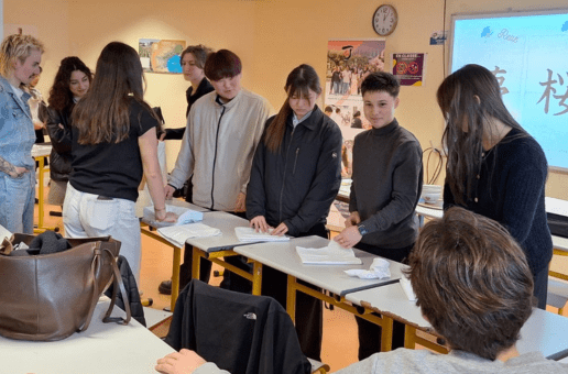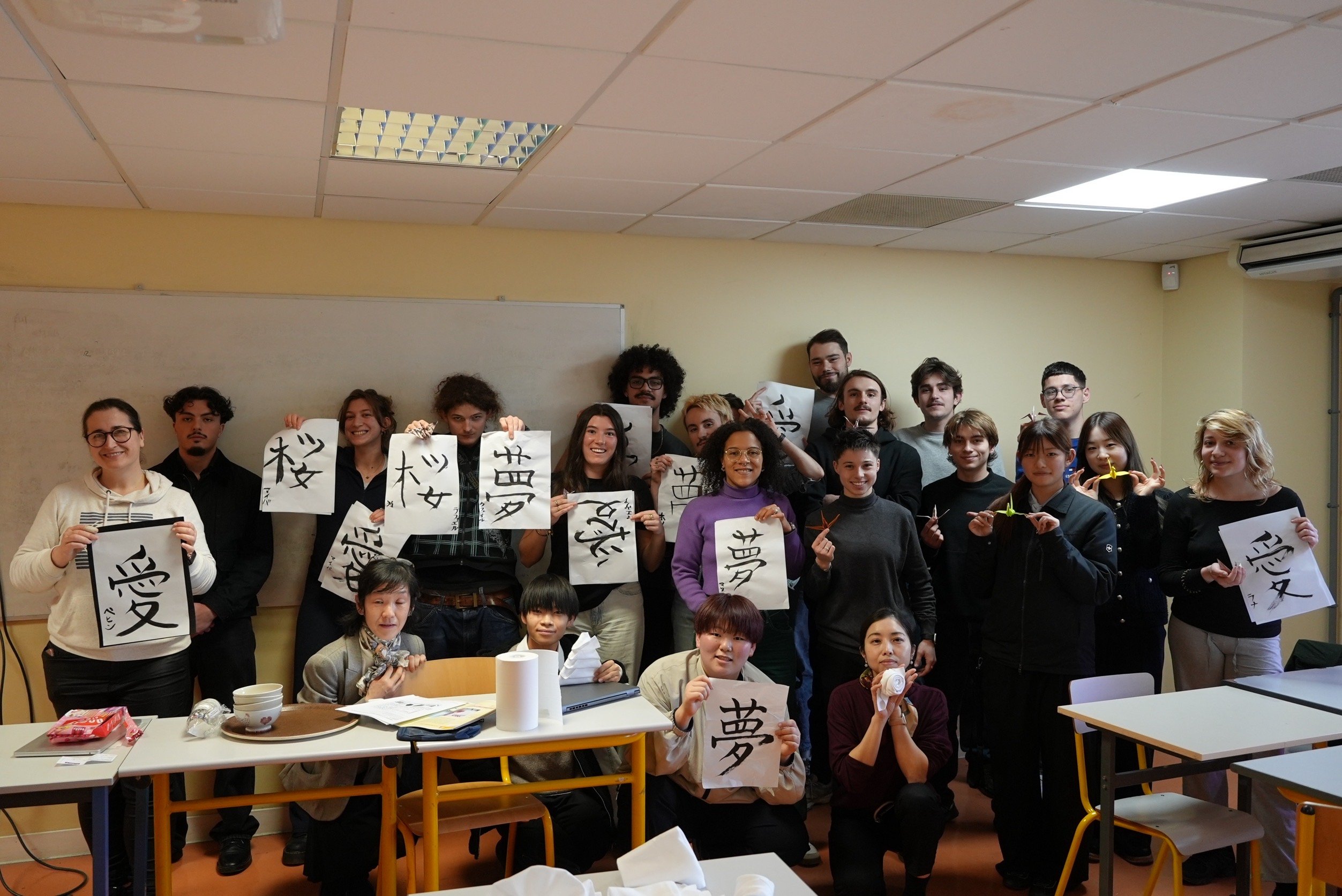 Pinceau en main, encre noire sur papier blanc, nos apprentis ont également exploré la calligraphie japonaise. Chaque trait demande concentration et intention. Ici, écrire devient un geste artistique, presque chorégraphié. Une belle manière de comprendre que, dans la culture japonaise, l’esthétique et la discipline dialoguent en permanence.
