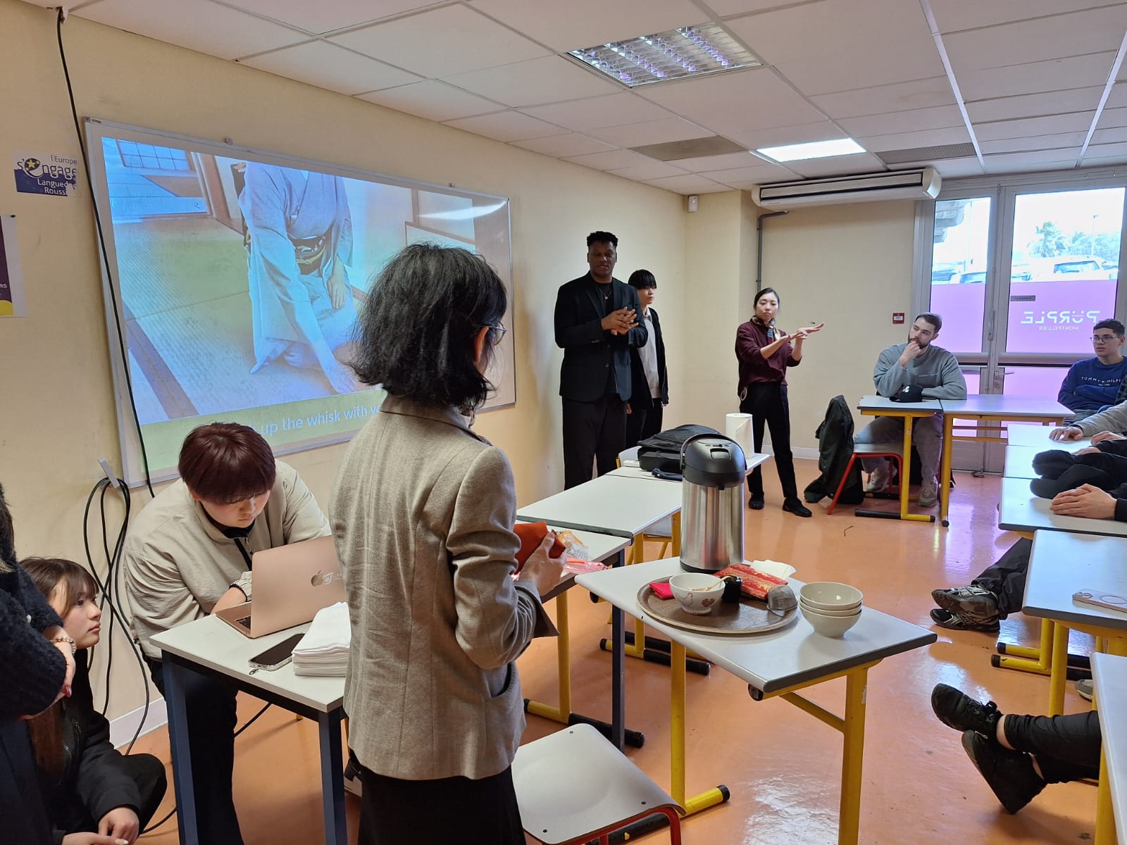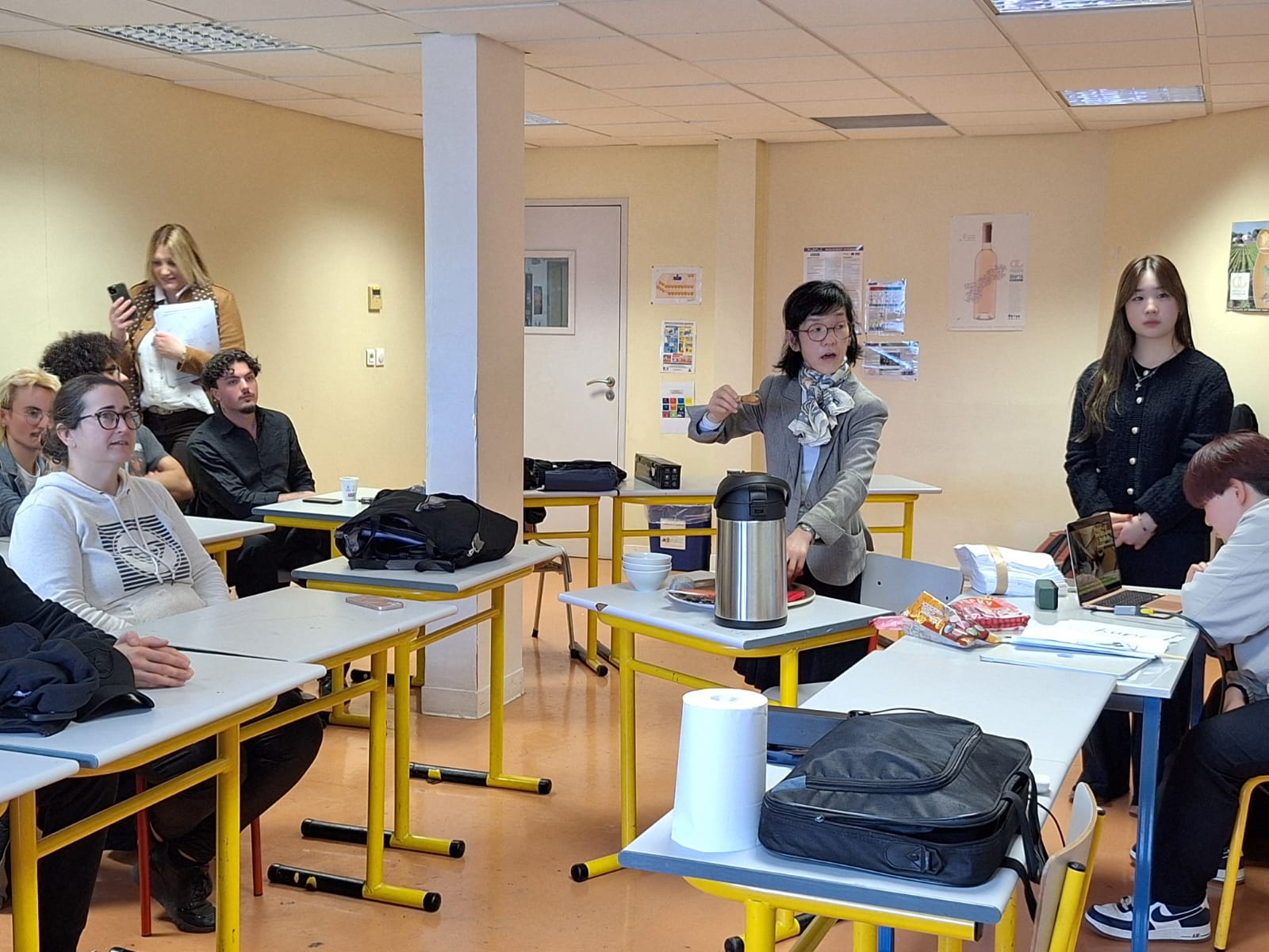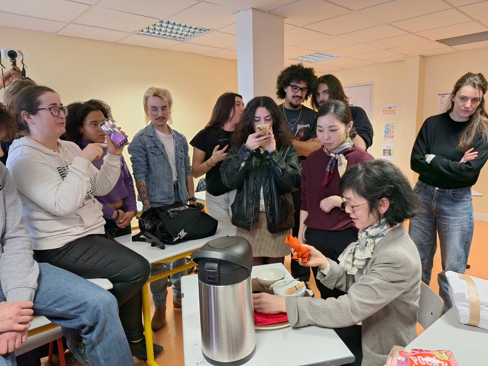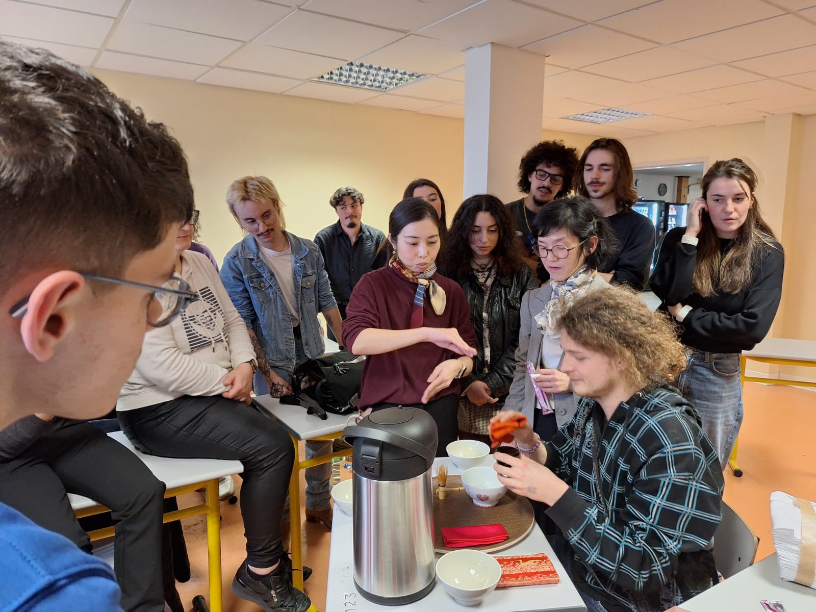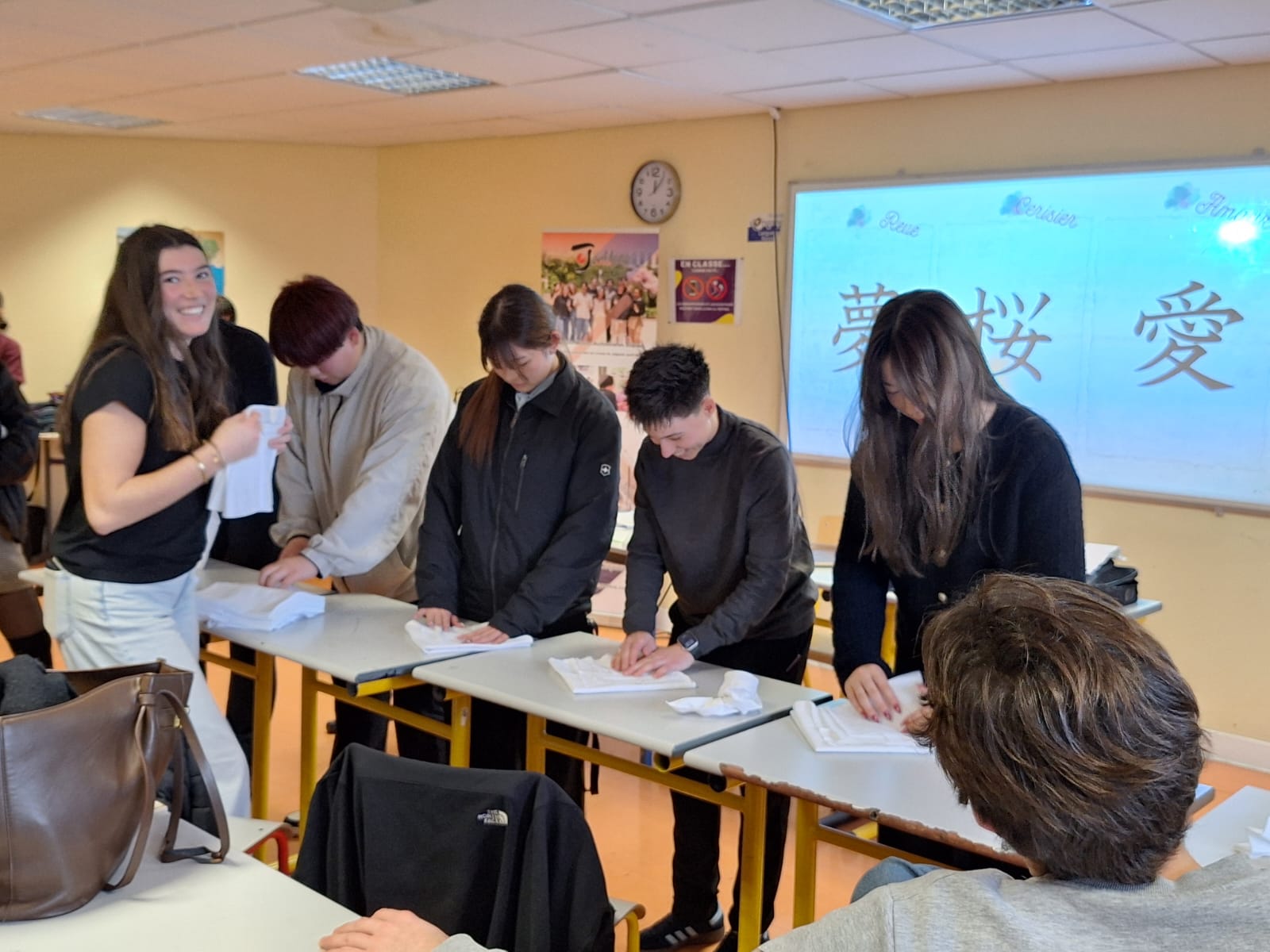 Sous les conseils attentifs de nos hôtes japonais, nos apprentis serveurs ont découvert l’origami, cet art délicat du pliage de papier mis en application directement sur les serviettes de table pour les convives du restaurant d’application. Un carré, quelques plis précis, et soudain apparaît une grue, une fleur, une figure symbolique.