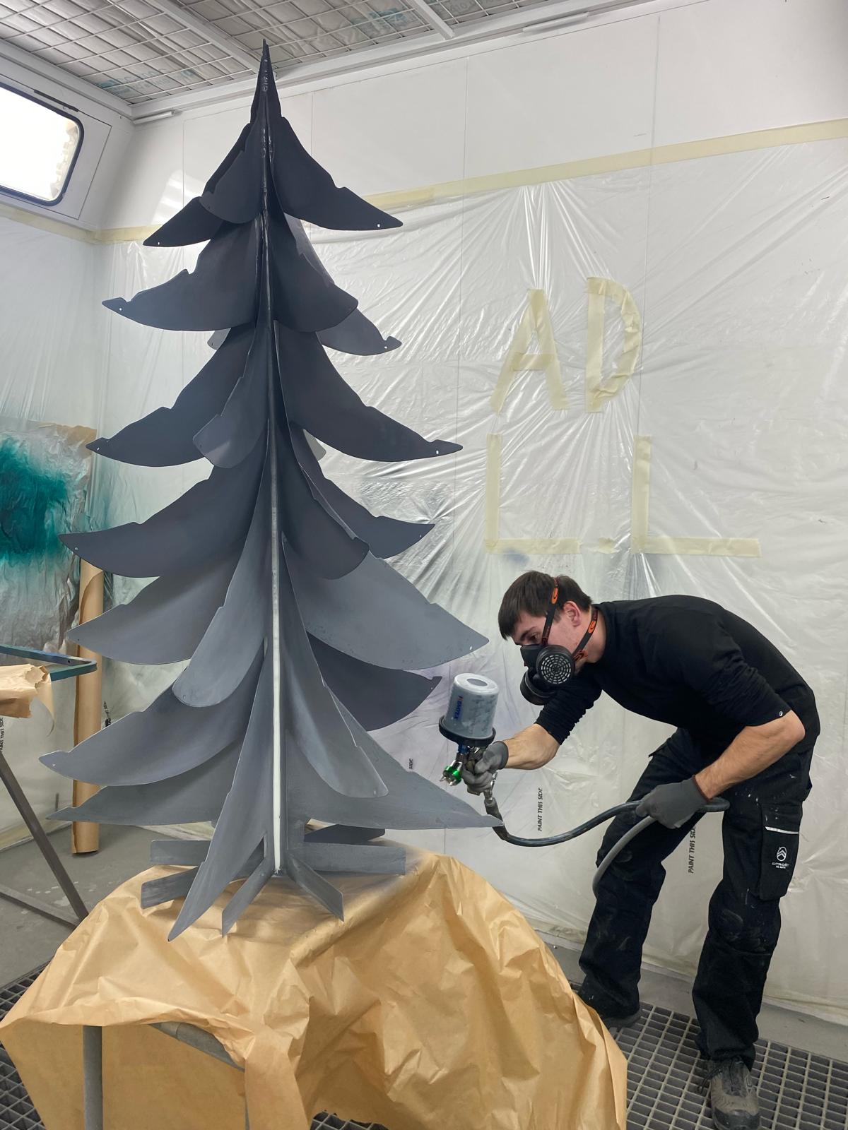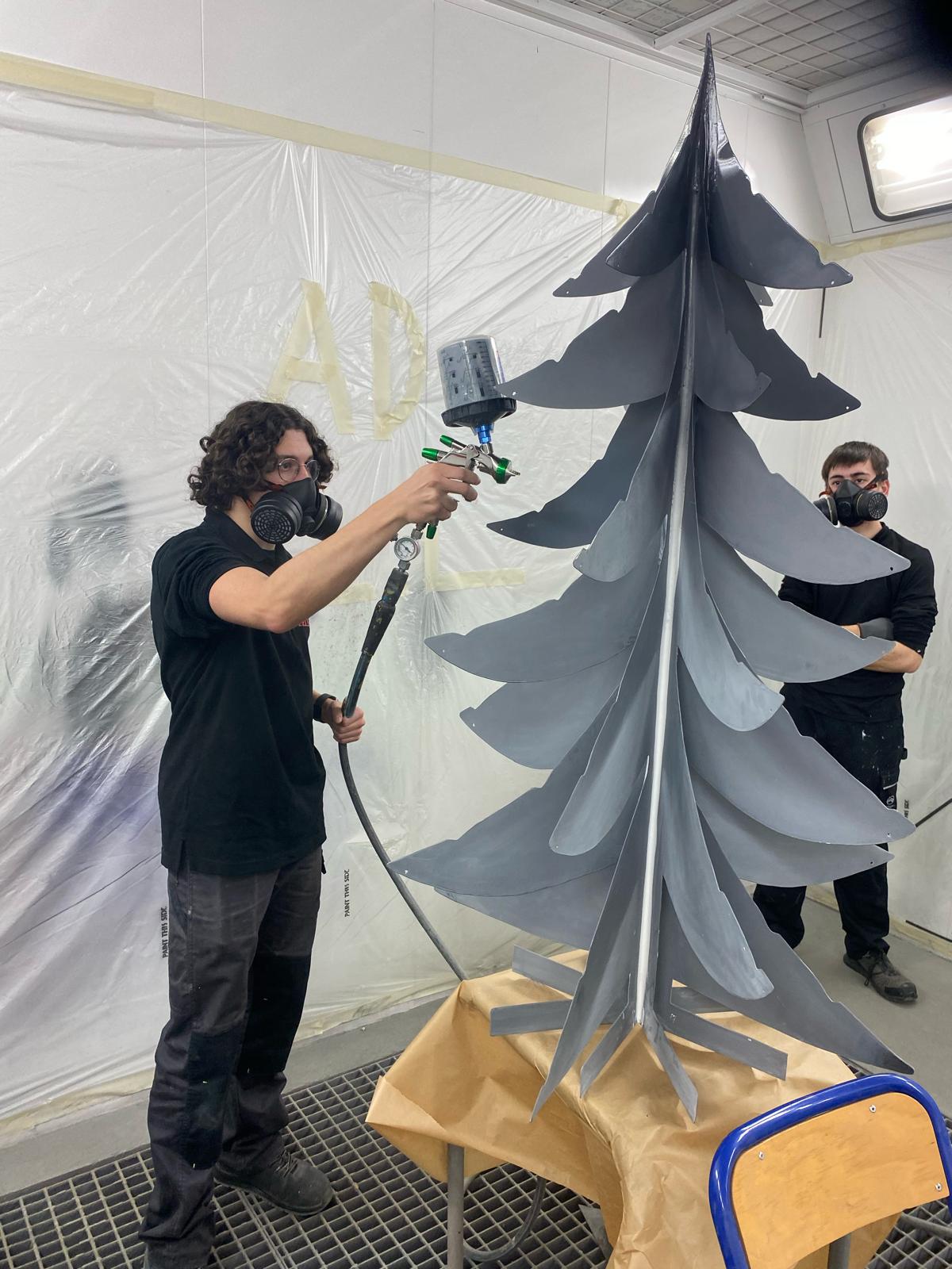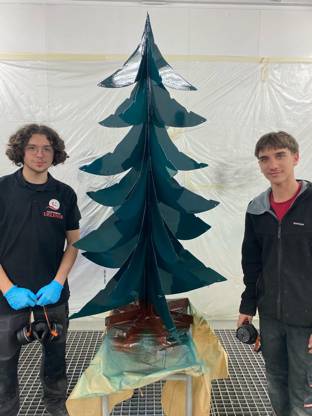 Cette annĂ©e, nos carrossiers-peintres ont une nouvelle fois dĂ©montrĂ© lâĂ©tendue de leurs compĂ©tences en concevant deux dĂ©corations emblĂ©matiques de NoĂ«l : un sapin en 3D et un bonhomme de neige. De la conception Ă la rĂ©alisation, ce projet leur a permis de mobiliser prĂ©cision, crĂ©ativitĂ© et travail dâĂ©quipe, tout en appliquant les techniques apprises en formation.