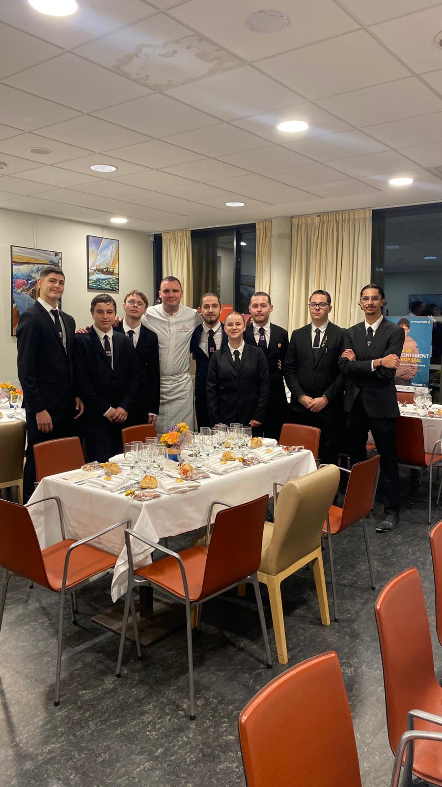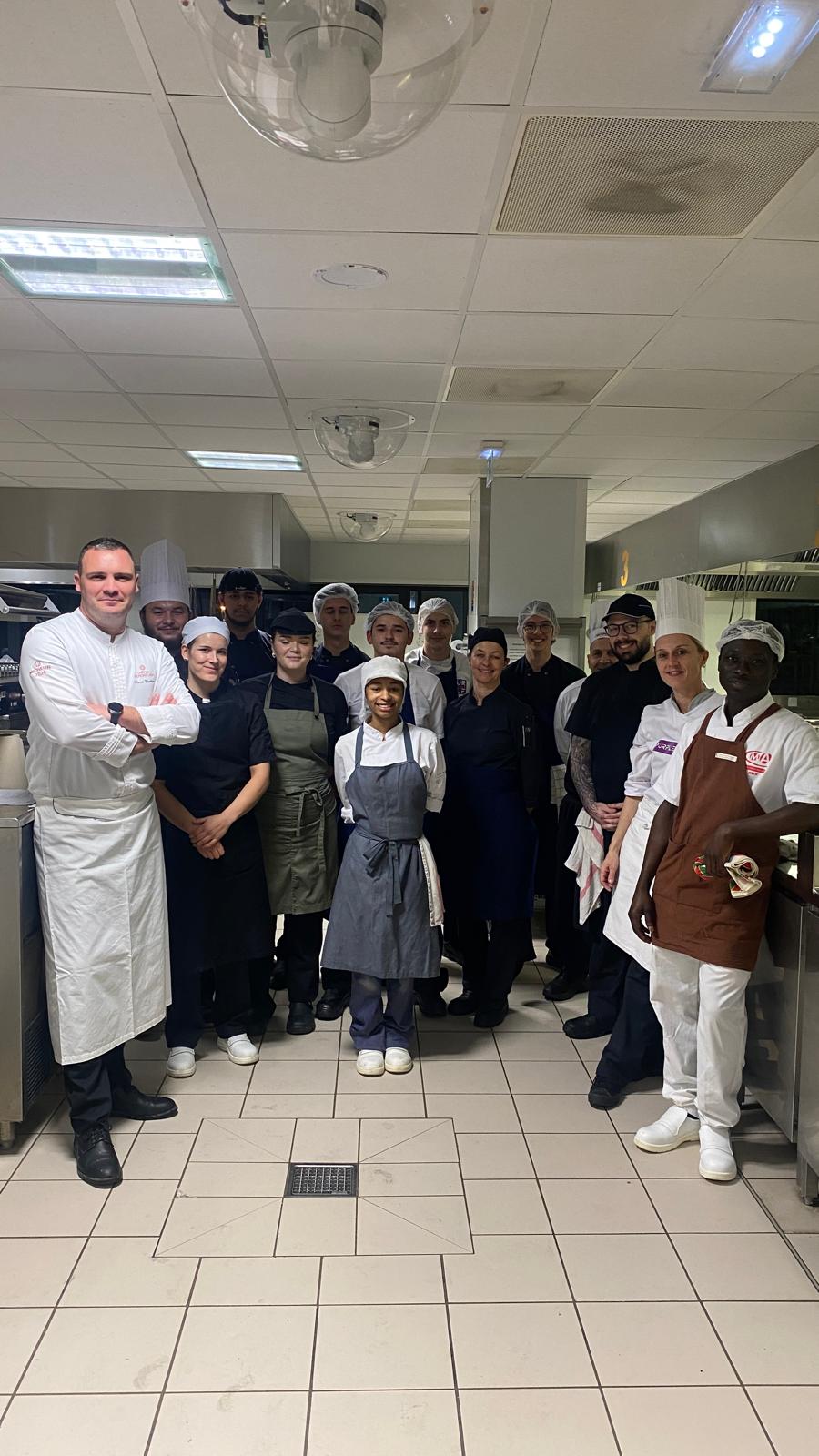 Cette année, l’événement a été porté par l’implication remarquable du chef étoilé Matthieu Hervé, du restaurant Château de Montcaud, qui a une nouvelle fois accepté d’accompagner nos apprentis dans cette belle aventure culinaire. Aux côtés de nos jeunes en formation Cuisine et Service, plusieurs anciens élèves ont également répondu présents pour offrir leur soutien et partager leur expérience.