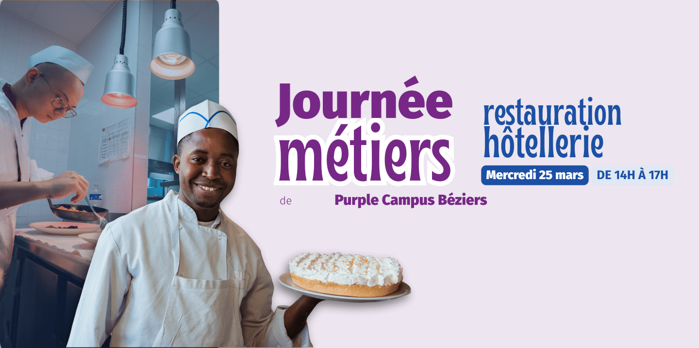 A Purple Campus Béziers, nous croyons que l’apprentissage passe avant tout par la pratique, l’expérience terrain et la passion du métier. C’est pourquoi nous vous proposons ce rendez-vous spécialement dédiés aux métiers de l’hôtellerie, de la restauration, de la sommellerie, du bar ou encore des desserts en restaurant.
