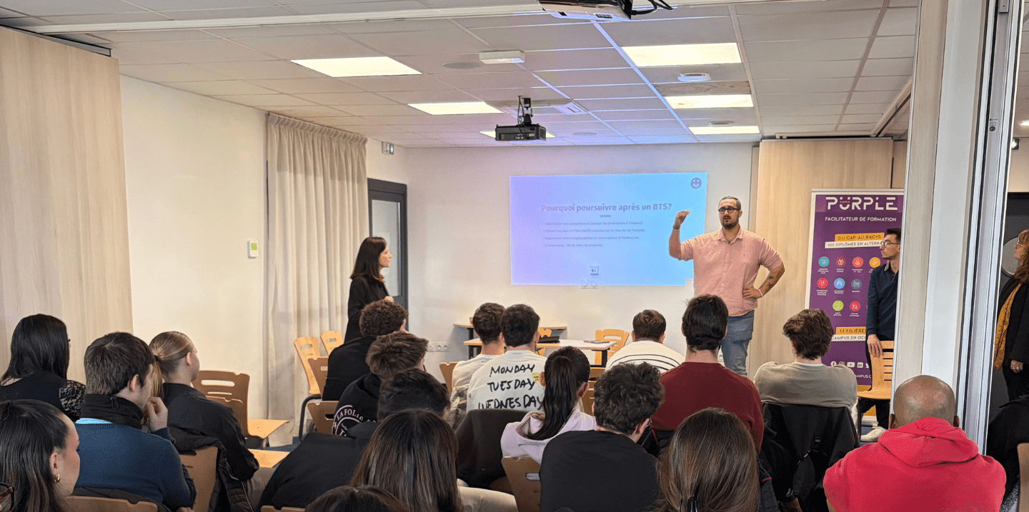 Au-delà de son parcours professionnel, Baptiste reste profondément attaché à son campus. Alumni impliqué dans la vie de Purple Campus Béziers, il n’hésite pas à partager son expérience avec les nouvelles promotions, convaincu que l’échange et la transmission font partie intégrante de la réussite.